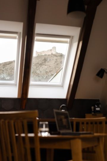 ... a věřte – to stačí. Na jedné straně geniální pohled na zříceninu hradu Děvičky, na straně druhé Novomlýnské nádrže. Klidná, zcela soukromá zahrada a terasy.